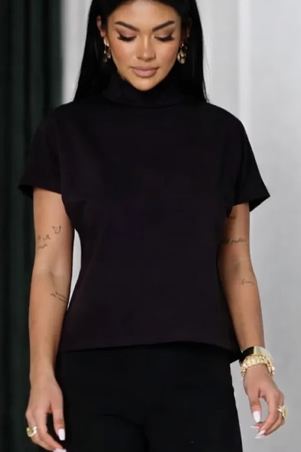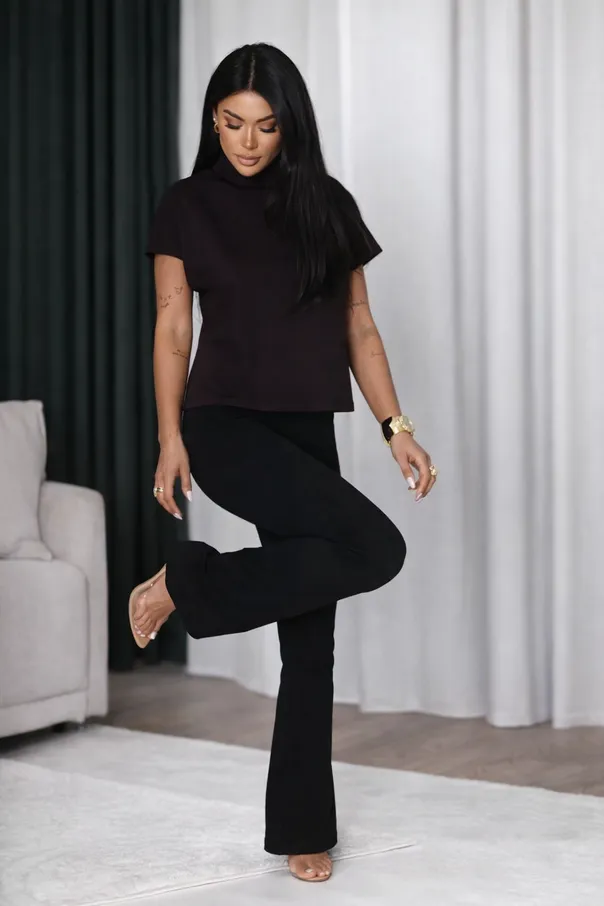 Czekoladowa pudełkowa dzianinowa bluzka RIVA