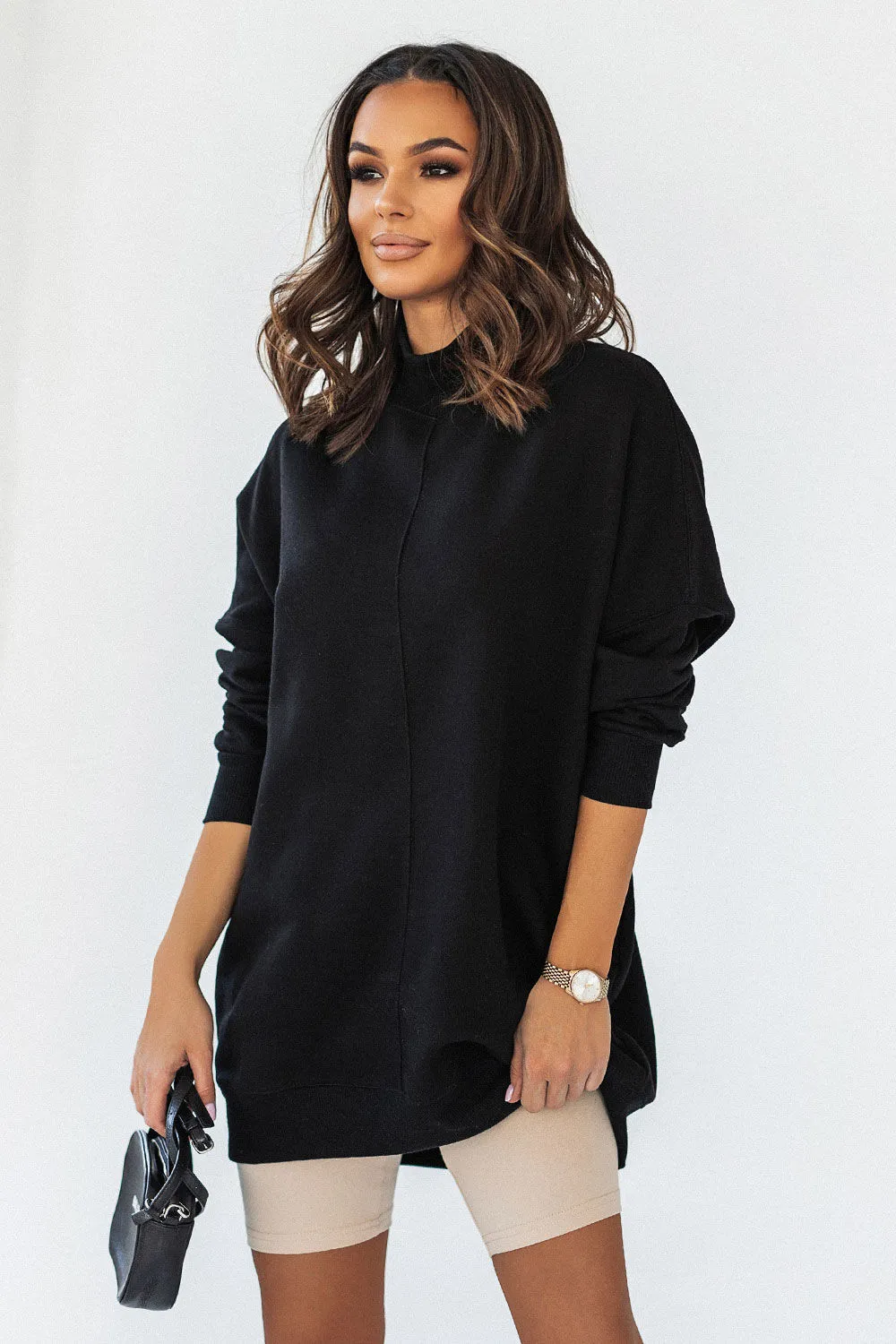 Czarna bluza Simple ze stójką i przeszyciami