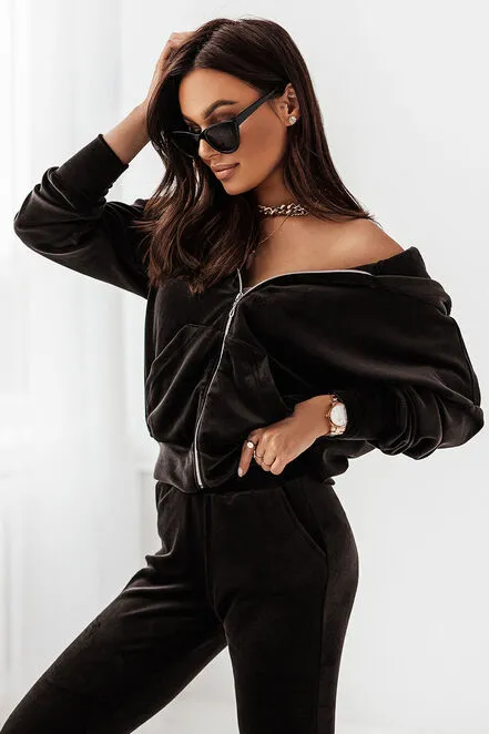 Czarny komplet MISTY bomberka + szerokie spodnie|