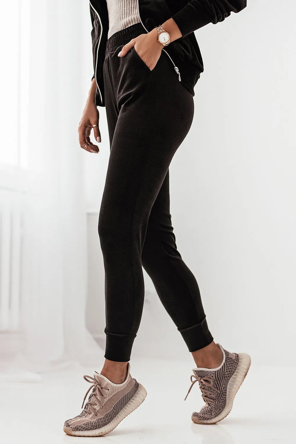 Czarne spodnie JINNY z prostymi nogawkami w kant