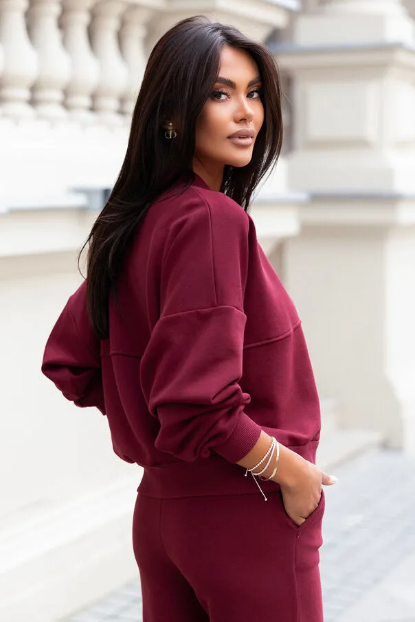 Bordowy komplet MISTY bomberka + szerokie spodnie