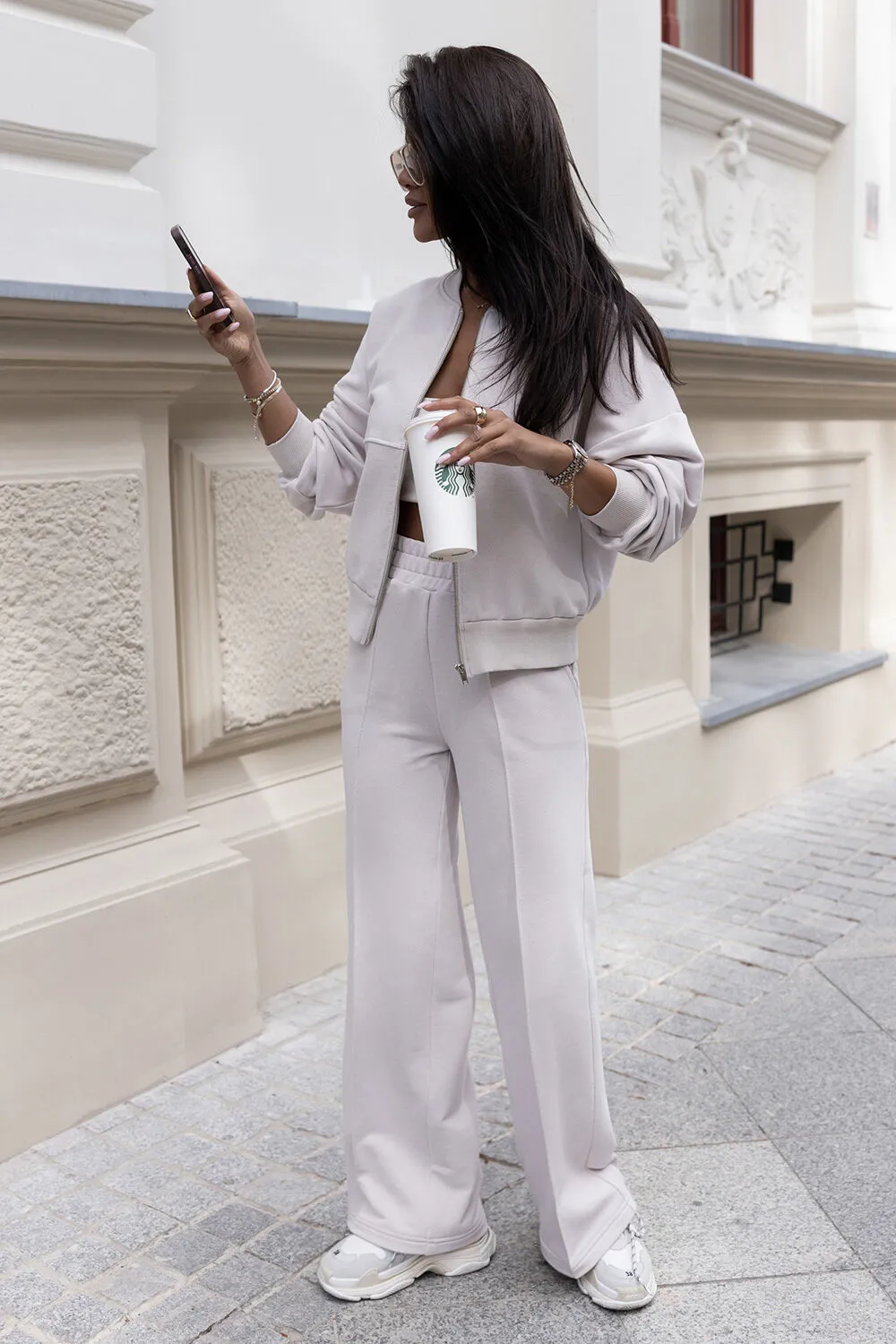 Beżowy komplet MISTY bomberka + szerokie spodnie