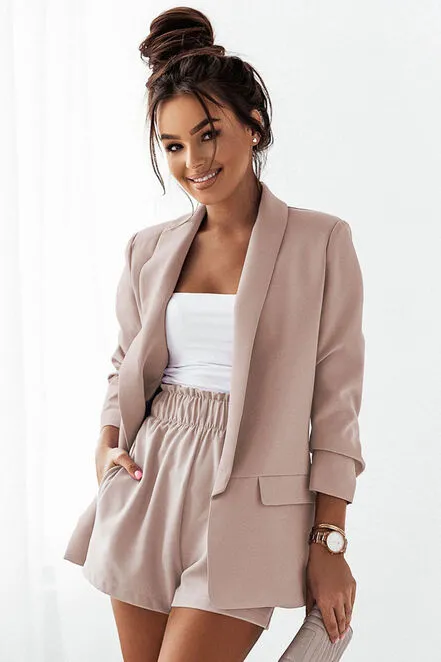 Beżowy komplet MARGO krótka marynarka + cygaretki|