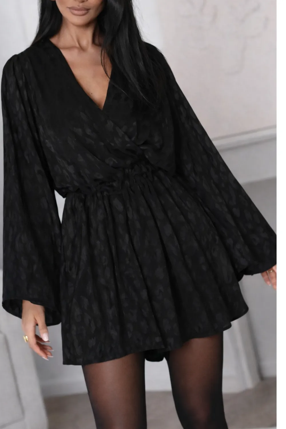 Wiskozowy czarny kombinezon KAEL w cętki