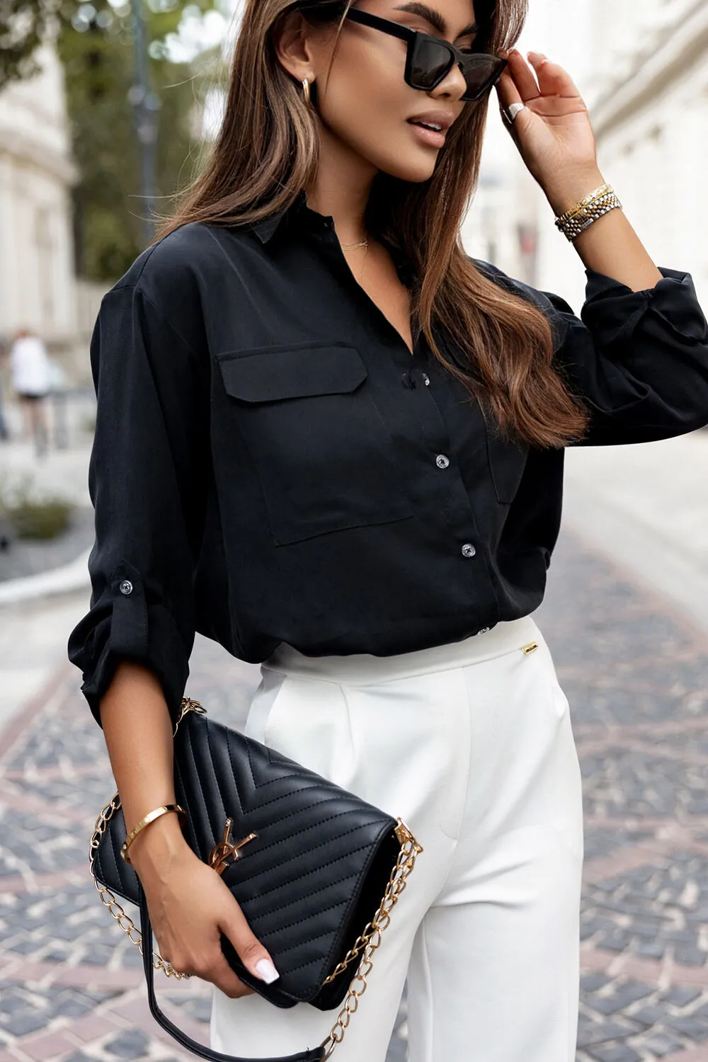 Czarna koszula z kieszeniami KAMERON