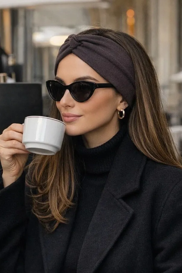Bawełniana czekoladowa opaska na głowę Maila