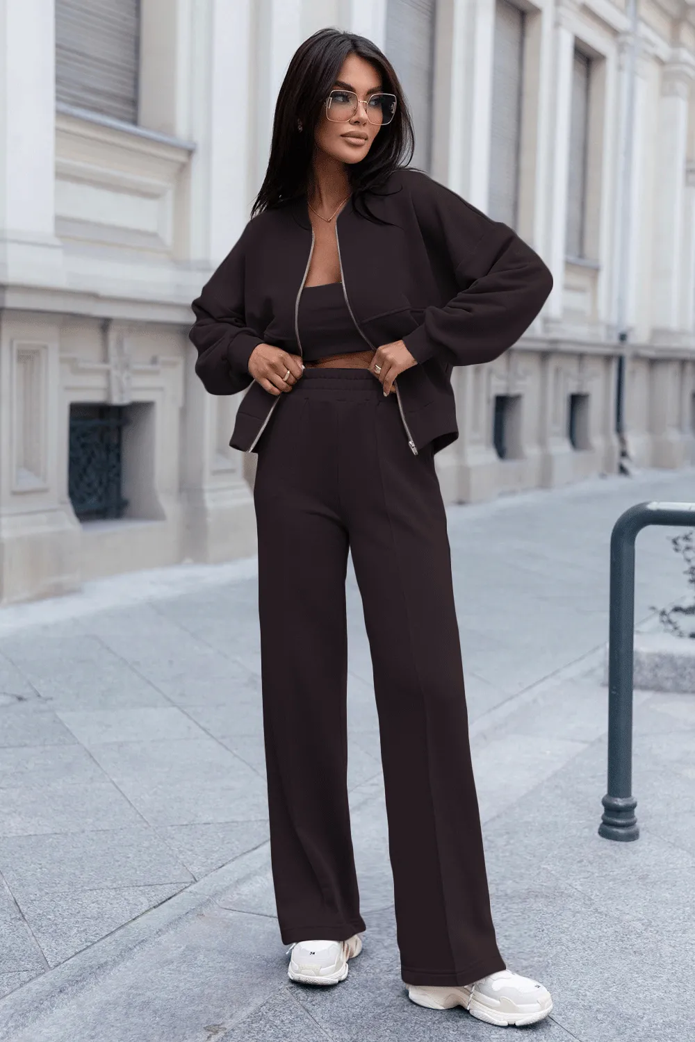 Czekoladowy komplet MISTY bomberka + szerokie spodnie