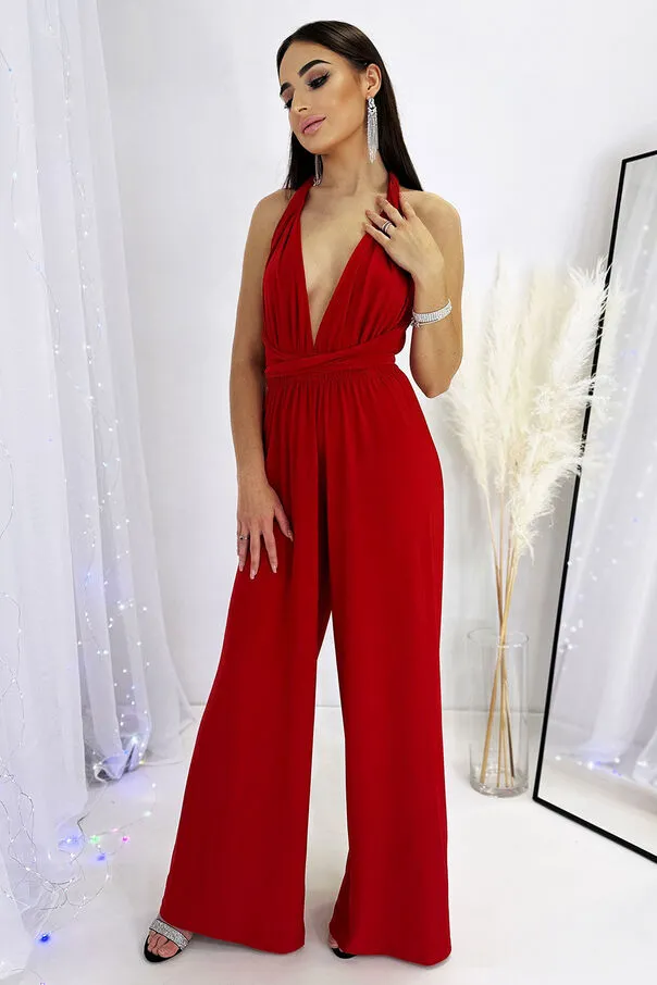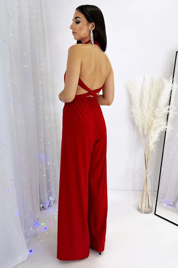 Czerwony kombinezon z szerokimi nogawkami FANTASTIC