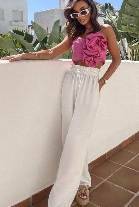 Śmietankowe szerokie spodnie z gumą w pasie BAHARI|