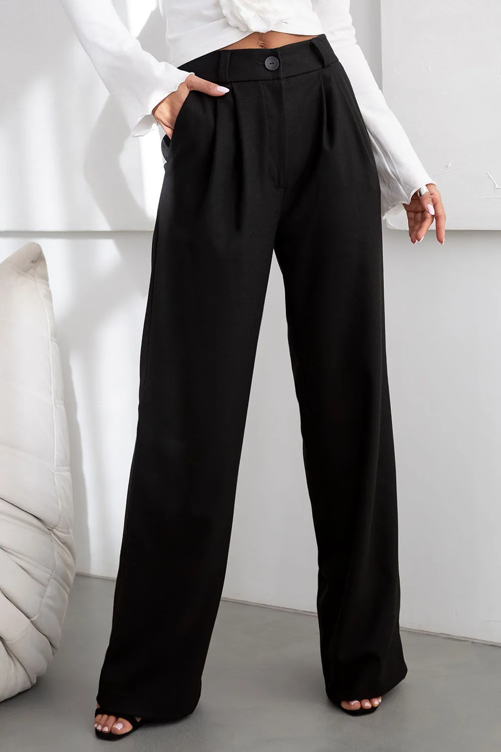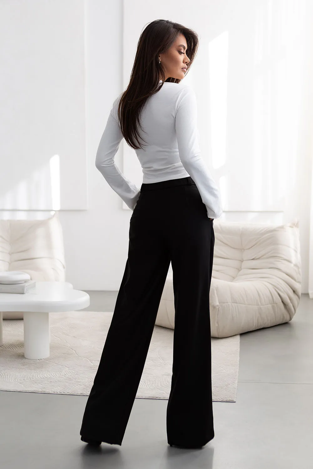 Czarne spodnie JINNY z prostymi nogawkami w kant
