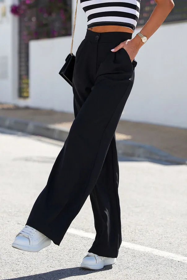 Czarne spodnie JINNY z prostymi nogawkami w kant