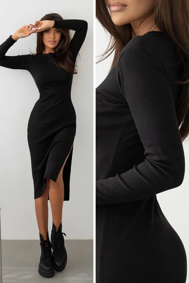 Czarna elastyczna sukienka z rozcięciem ROMANCE